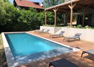 Spas de nage, spas haut de gamme, construction de piscines sur mesure, (piscine extérieure ou piscine intérieure), rénovation de piscine. Forts de notre expérience, nous créons votre piscine et votre espace bien-être selon vos désirs, dans le respect des normes de sécurité et avec une attention toute particulière à la qualité et à la simplicité d’utilisation de vos installations. Techn’Eau Leman vous propose aussi à la vente une large gamme de hammams, saunas et l’ensemble des accessoires, équipements et consommables.